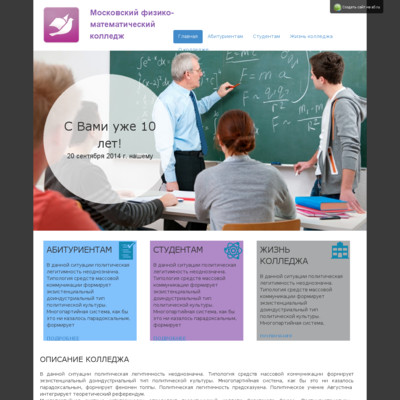 Библиотека конструктора сайтов A5.ru регулярно пополняется новыми заготовками, разработанными специально под нужды государственных и коммерческих компаний, предоставляющих услуги образования. Полностью готовый шаблон будет содержать полезную информацию как для руководителей и учителей, так и для их студентов. Этому способствует упорядоченная структура онлайн ресурсов, которые заранее разбиваются на логические блоки с соответствующими названиями.